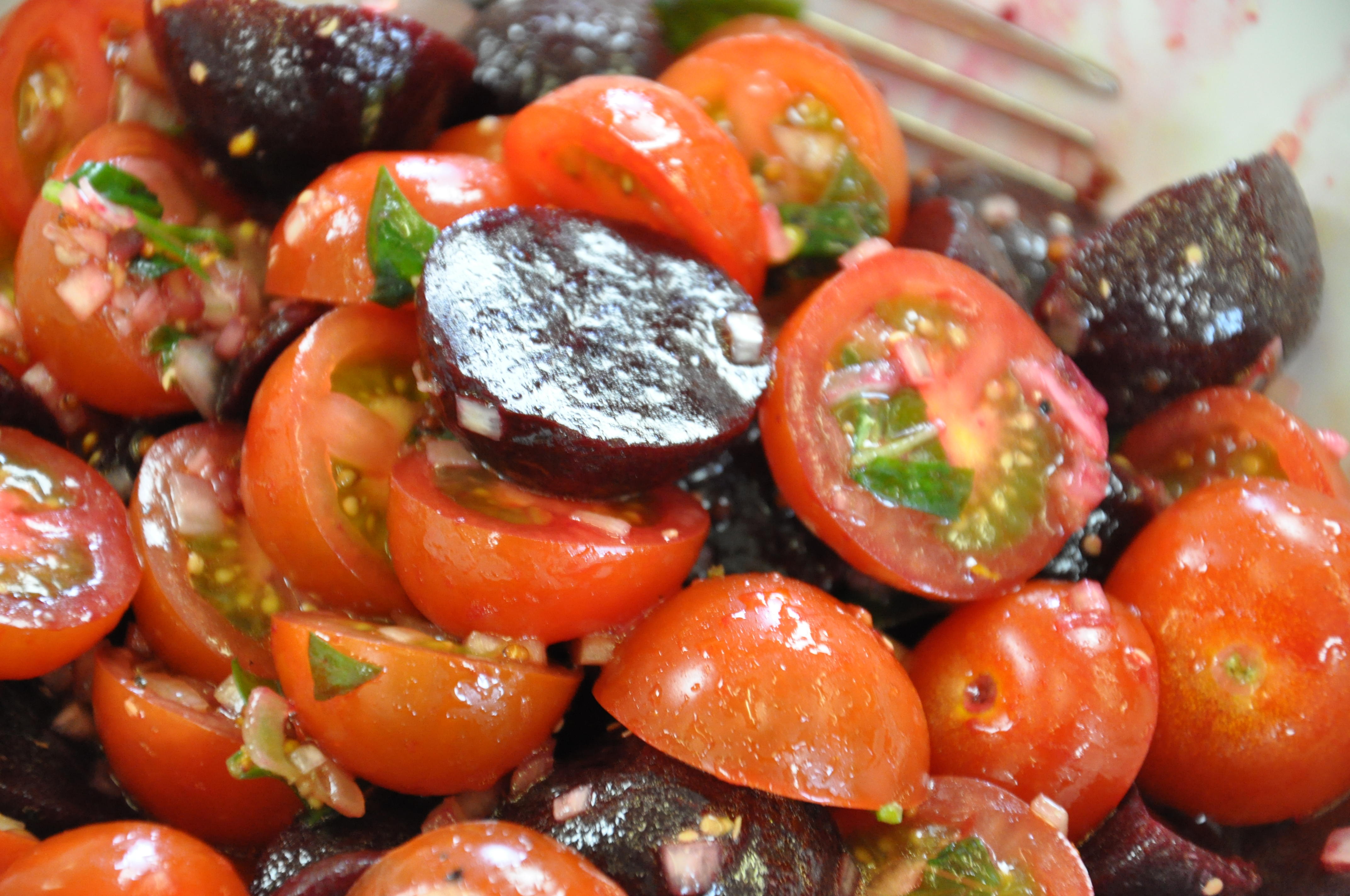 Beetroot and Cherry Tomato Salad with Basil and Orange Dressing